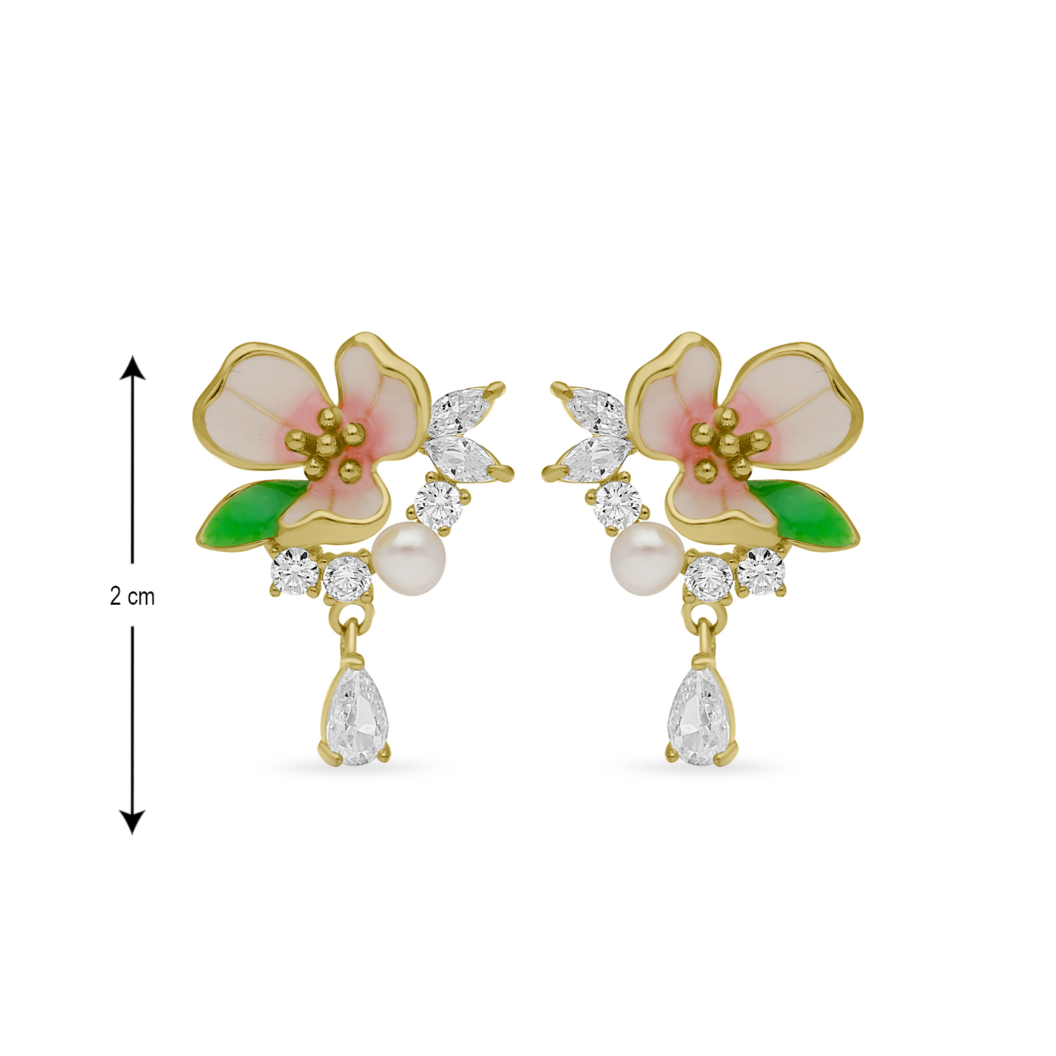 The Blossen Enamel Drop Earring is a vibrant, floral-inspired piece featuring a beautifully crafted pink enamel flower with a contrasting green enamel leaf accent. A single, sparkling crystal droplet dangles gracefully from the base, catching the light as it moves. This cheerful and detailed earring offers a fresh, pop-of-color look perfect for spring and summer occasions.