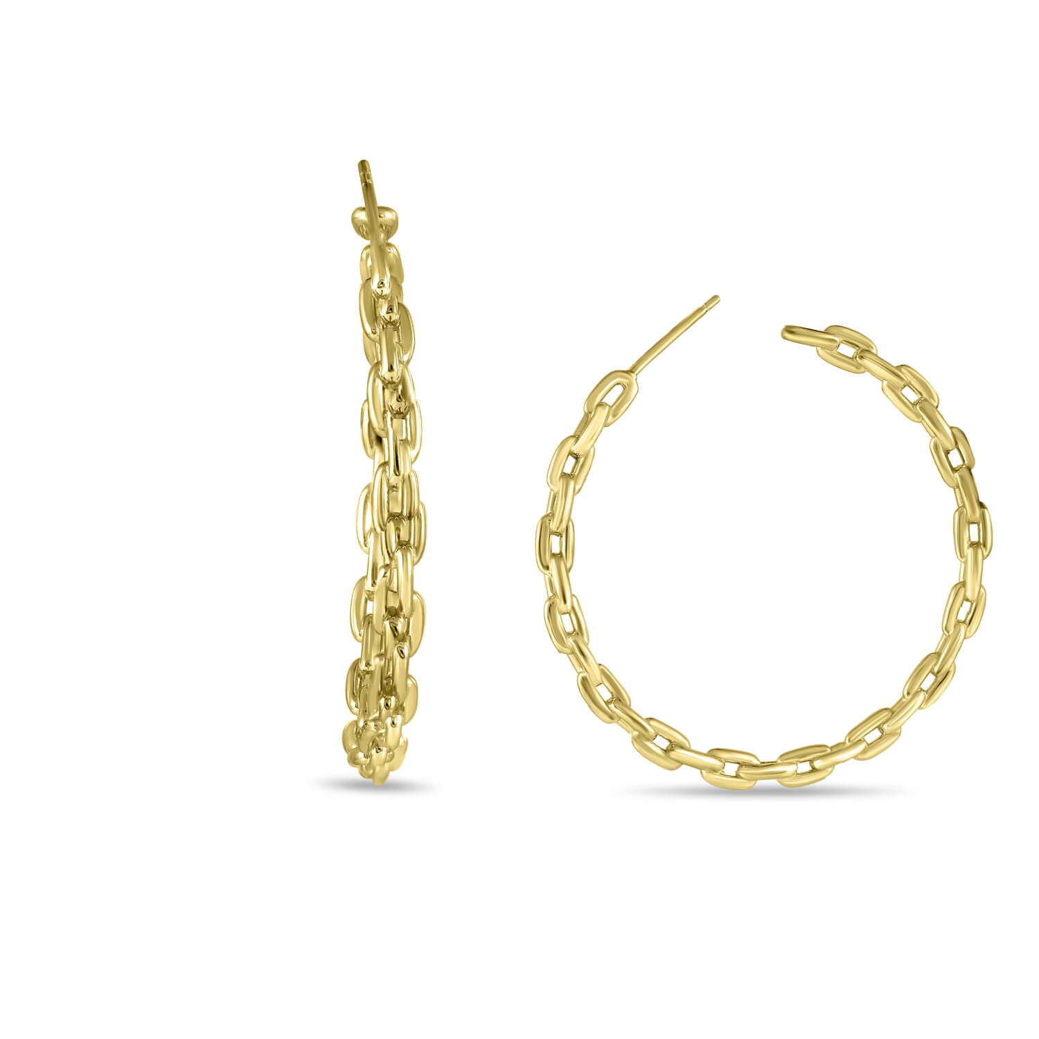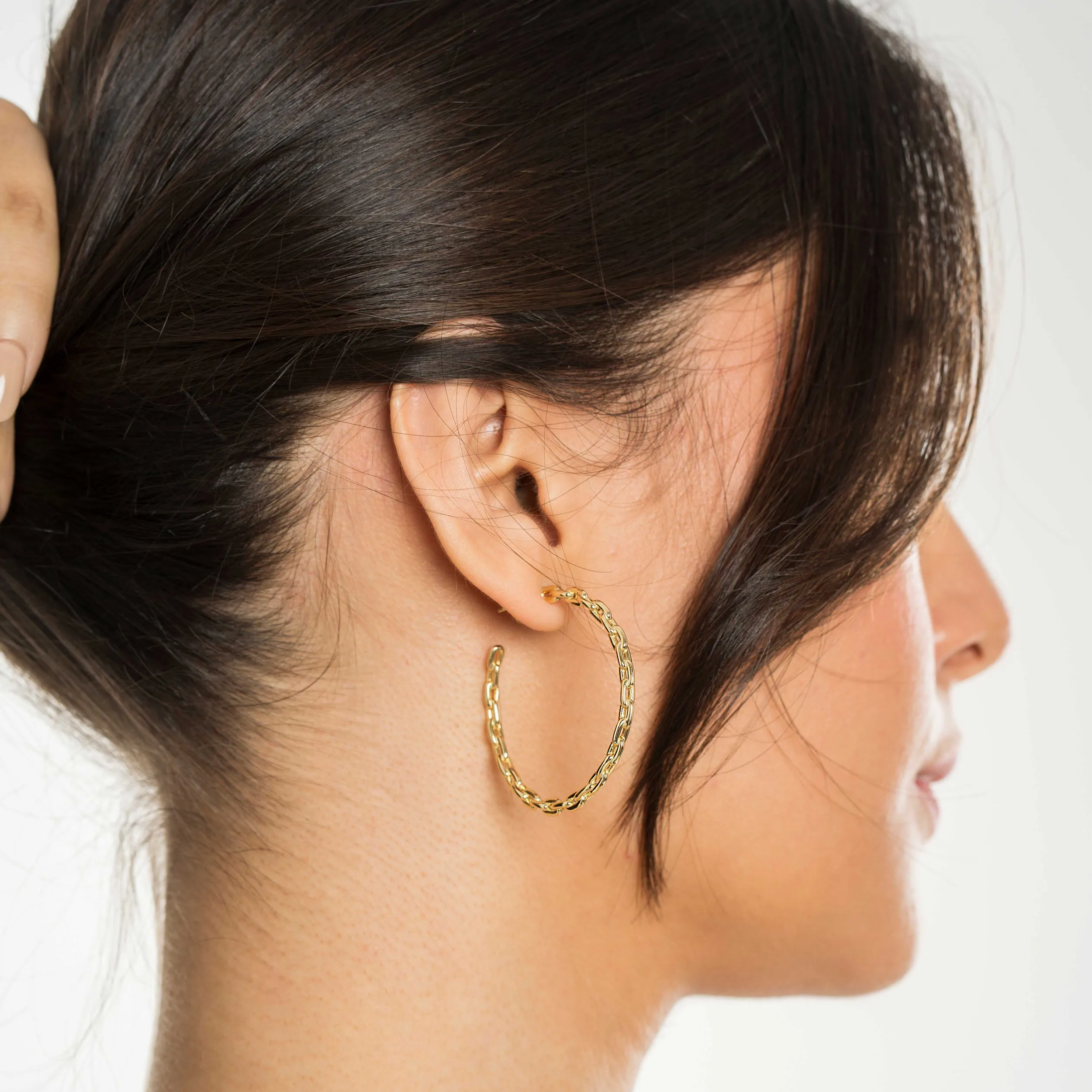 The Clarion Hoops are where modern craftsmanship meets classic charm.Each chain link captures light in its own way, creating a subtle play of shine with every move. Crafted in 92.5 silver and finished in gold, they reflect strength, femininity, and individuality.
