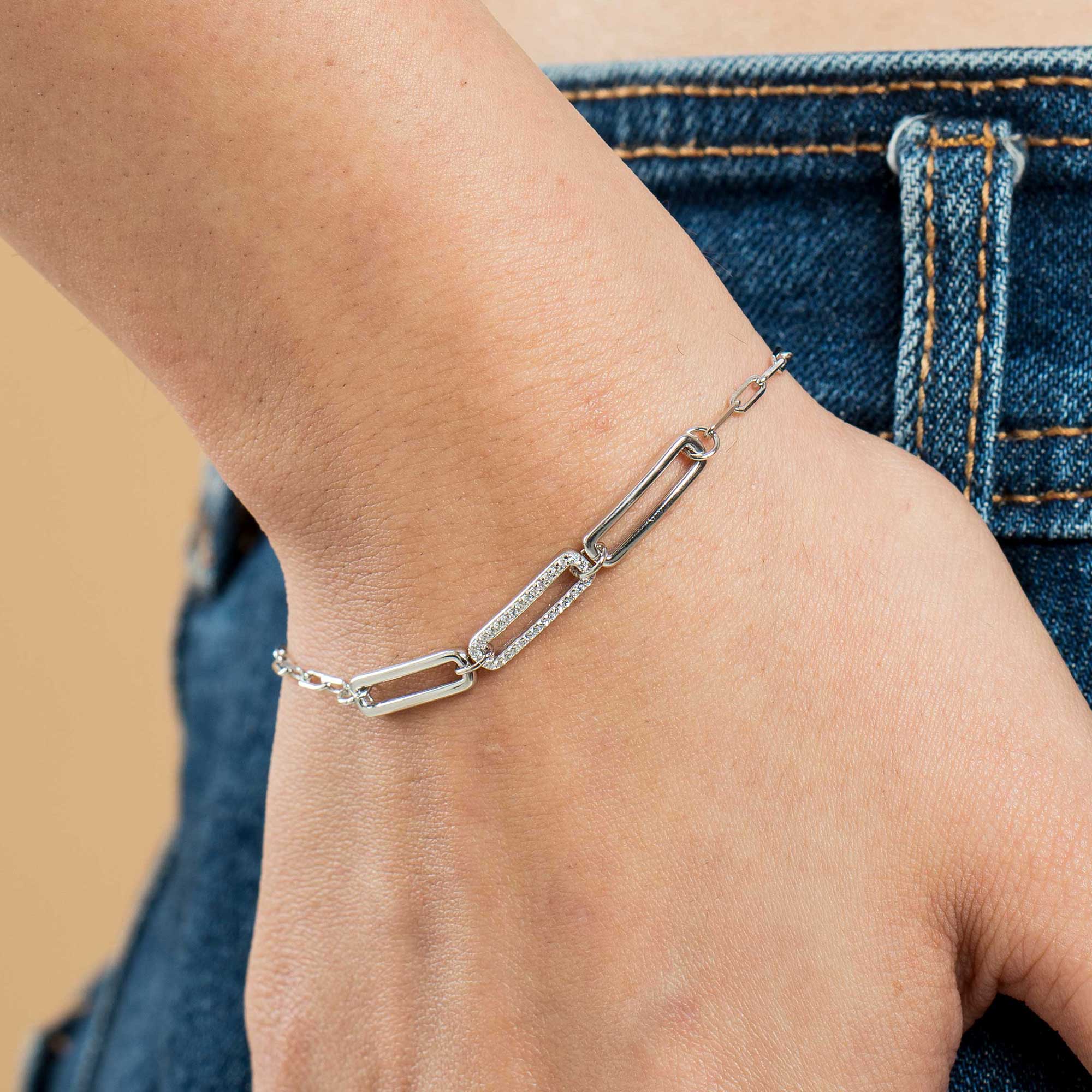 The Clipra 3 Paper Clip Bracelet is a contemporary and minimalist piece that takes inspiration from everyday stationery. Crafted in shining 925 sterling silver, it features a design where three stylized paper clip motifs are linked to form a playful yet chic statement. This bracelet offers a unique, effortlessly cool accessory perfect for modern stacking.
