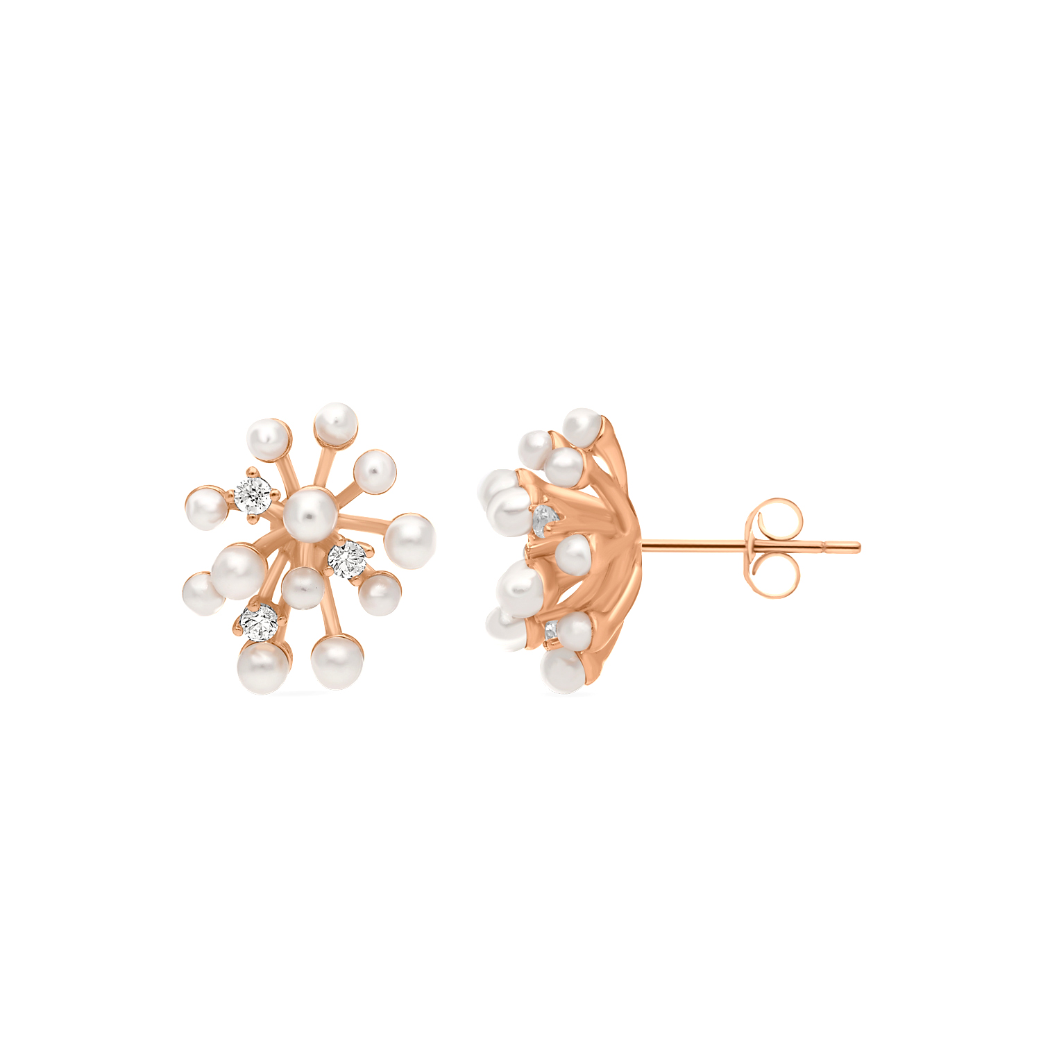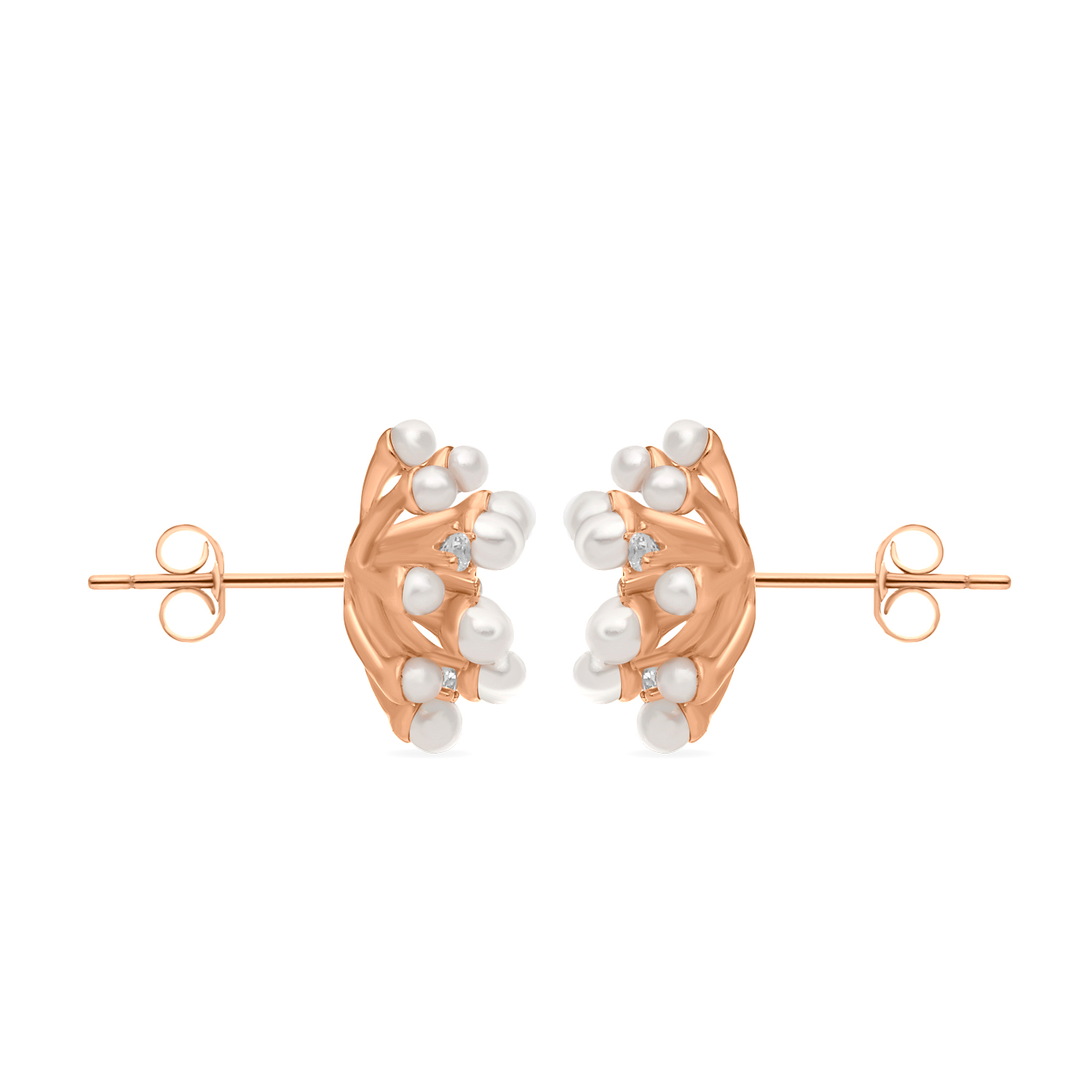 The Clusette Clustered Pearl Earring is a sophisticated accessory featuring a dense, beautiful grouping of lustrous pearls. Set in a base with a warm, elegant rose gold polish, this piece creates a prominent, glamorous look. The design offers a romantic colour palette and a voluminous profile perfect for formal events or bridal wear.