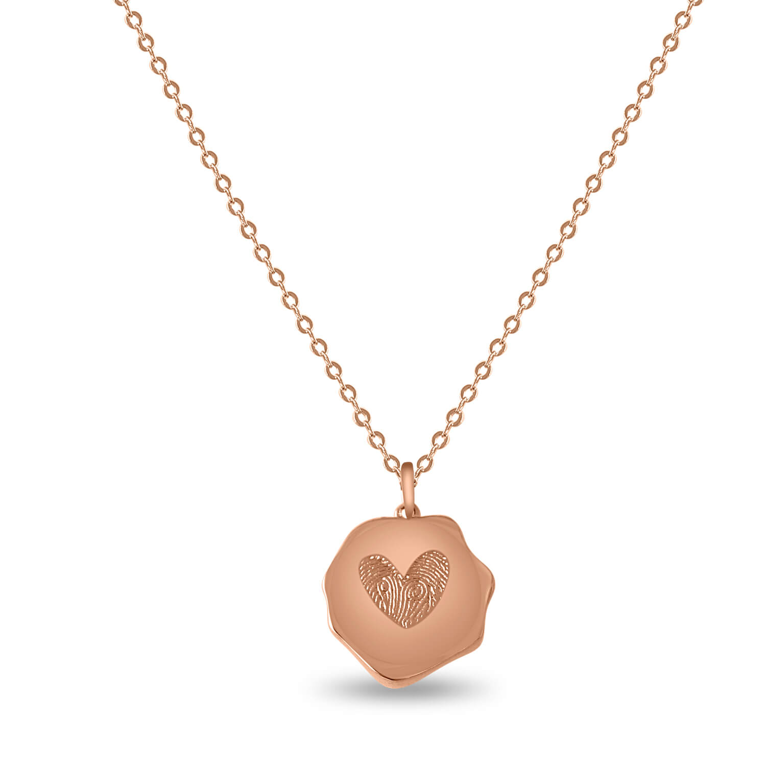 The Coretta Necklace is a tender symbol of intimacy and connection. Crafted in 92.5 silver with a rose-gold finish, its organic wax-seal form holds a delicately engraved fingerprint heart , a reminder that love leaves its mark in the most beautiful ways.
