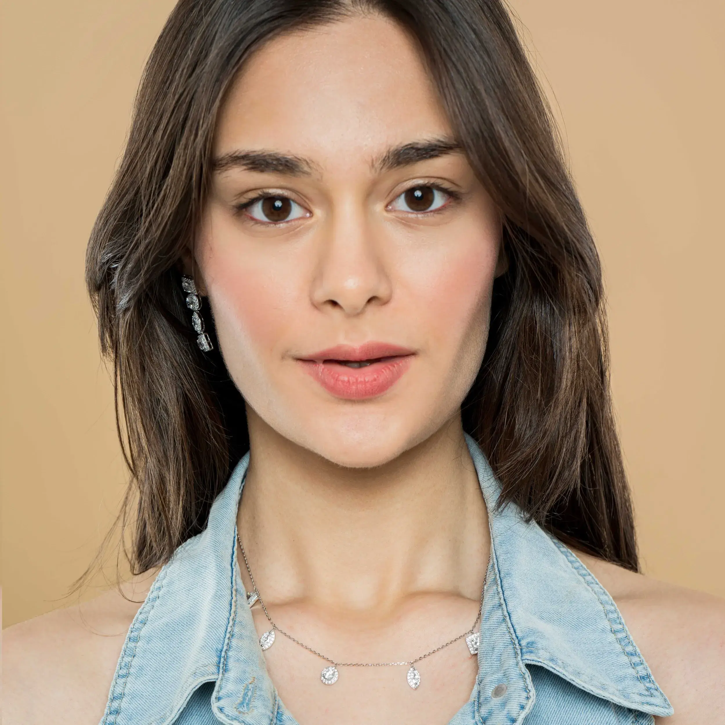 The Cubivyn Solitaire Set is a brilliant matching ensemble crafted from luminous 925 sterling silver. The pieces feature a modern, alternating design of geometric motifs: sparkling square solitaires, elegant droplets, and classic circles. This coordinated set offers a versatile blend of shapes and continuous light reflection for a sophisticated, unified look.
