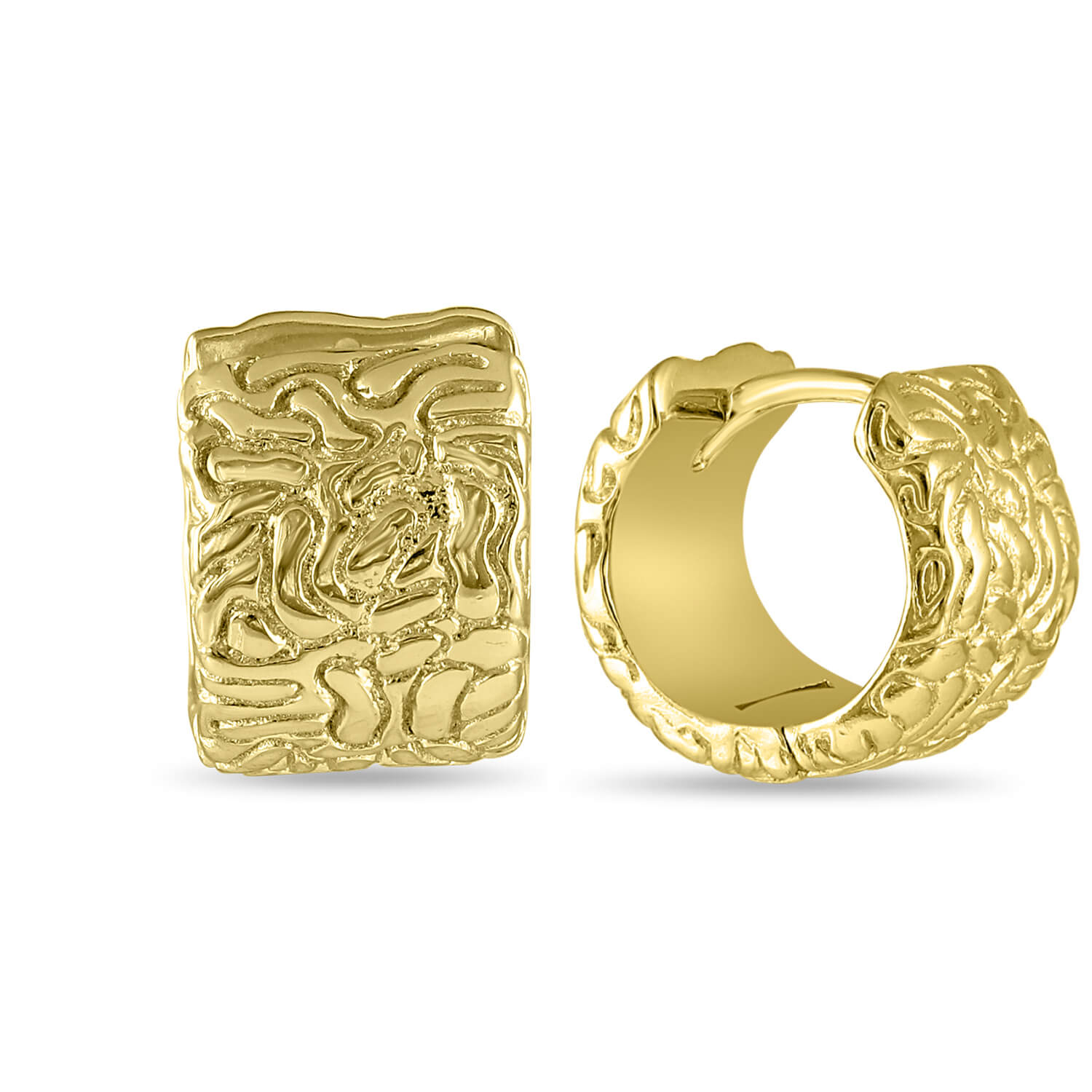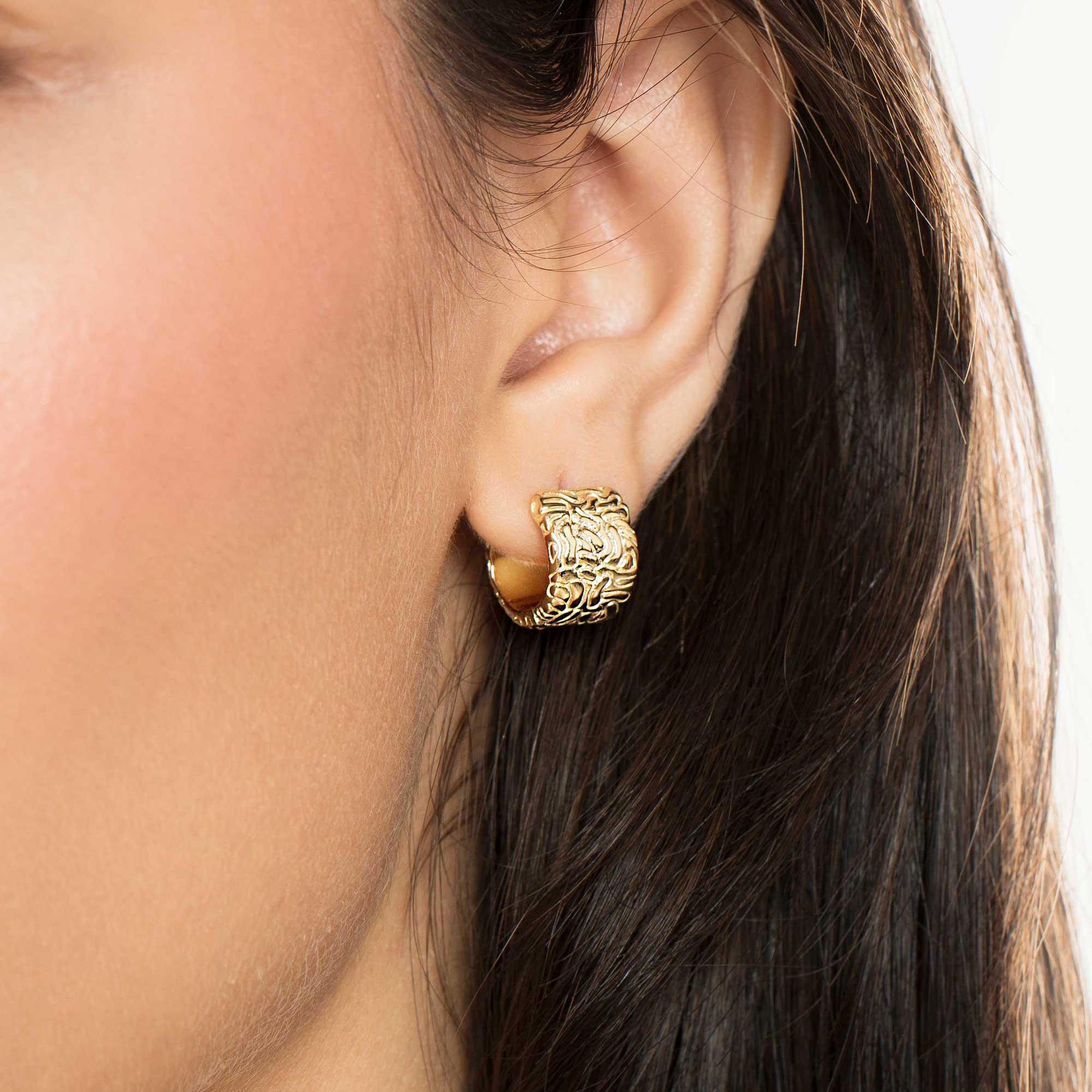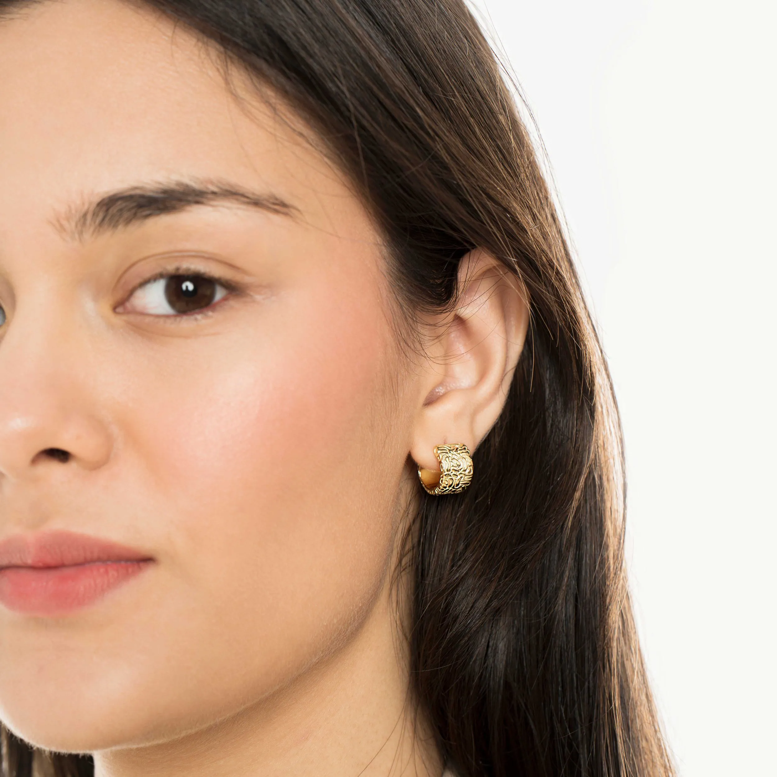 The Elyth Small Hoops are an elegantly textured take on a classic earring style. Featuring a finely detailed, crinkled or woven pattern (as seen in the image), these small hoops offer subtle visual interest and depth. Crafted from high-quality material (like 925 silver), they are the perfect versatile accessory for adding a touch of sophisticated texture to your daily look.