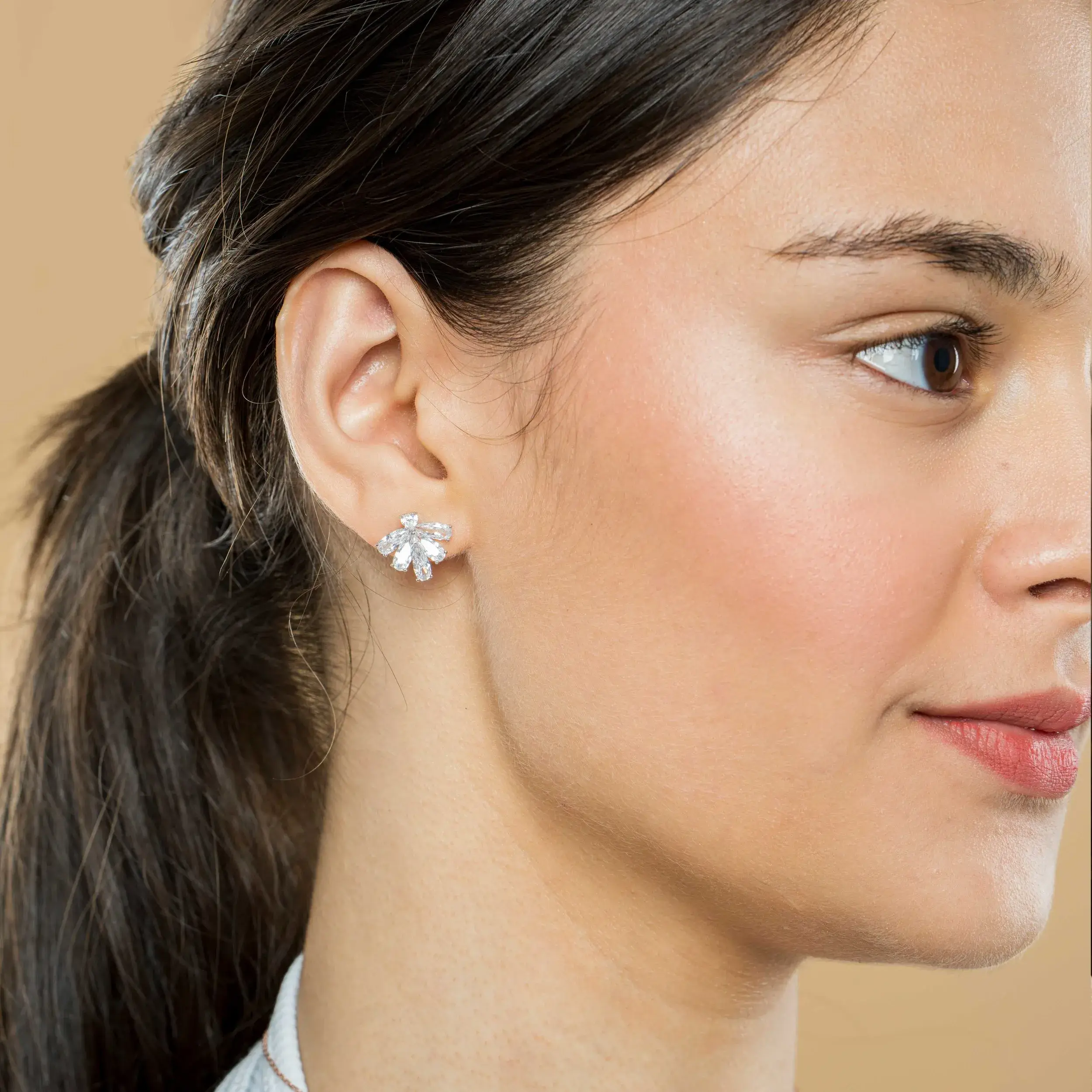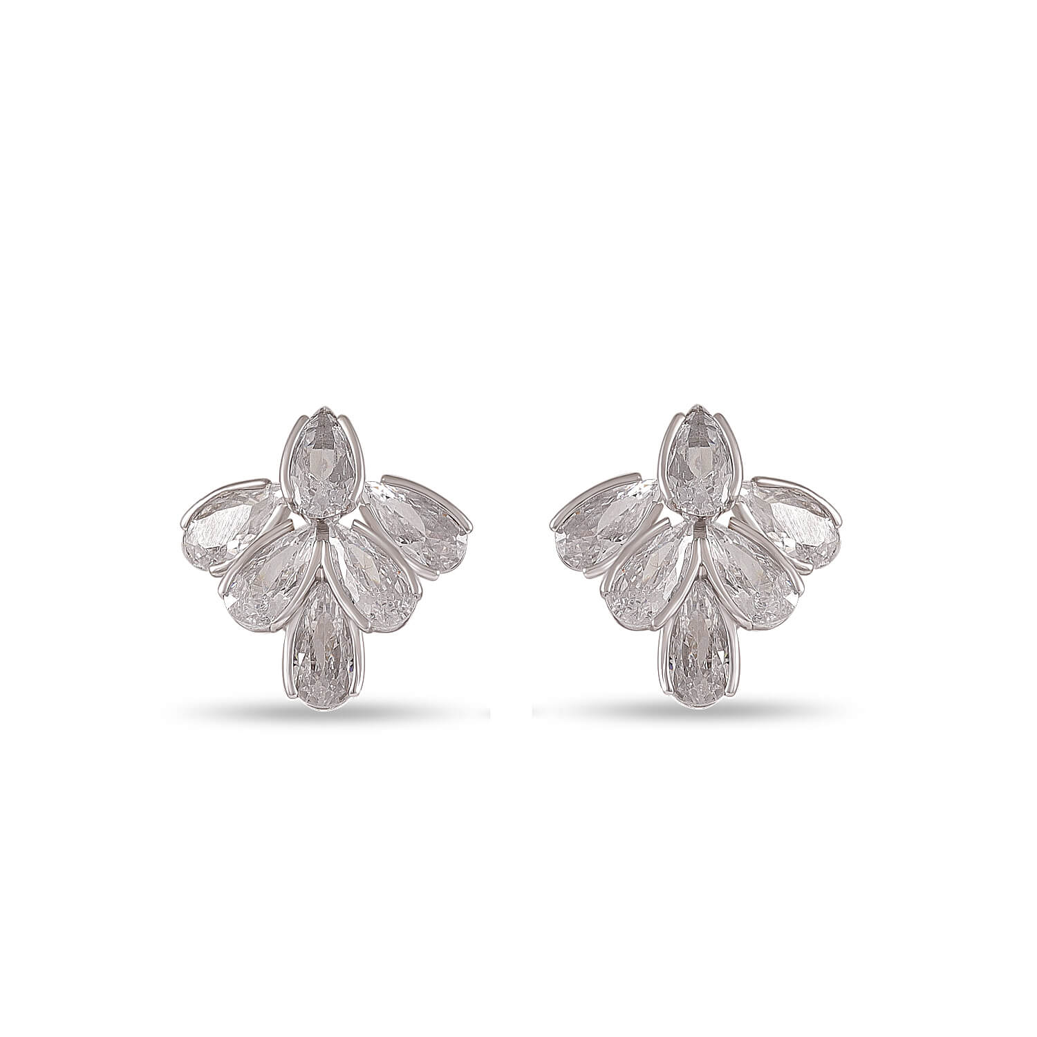 Faye is a study in balance – sparkling yet subtle, poised yet playful. The marquise-like layout of stones gives them a blooming effect, making them perfect for adding a touch of magic to your look.