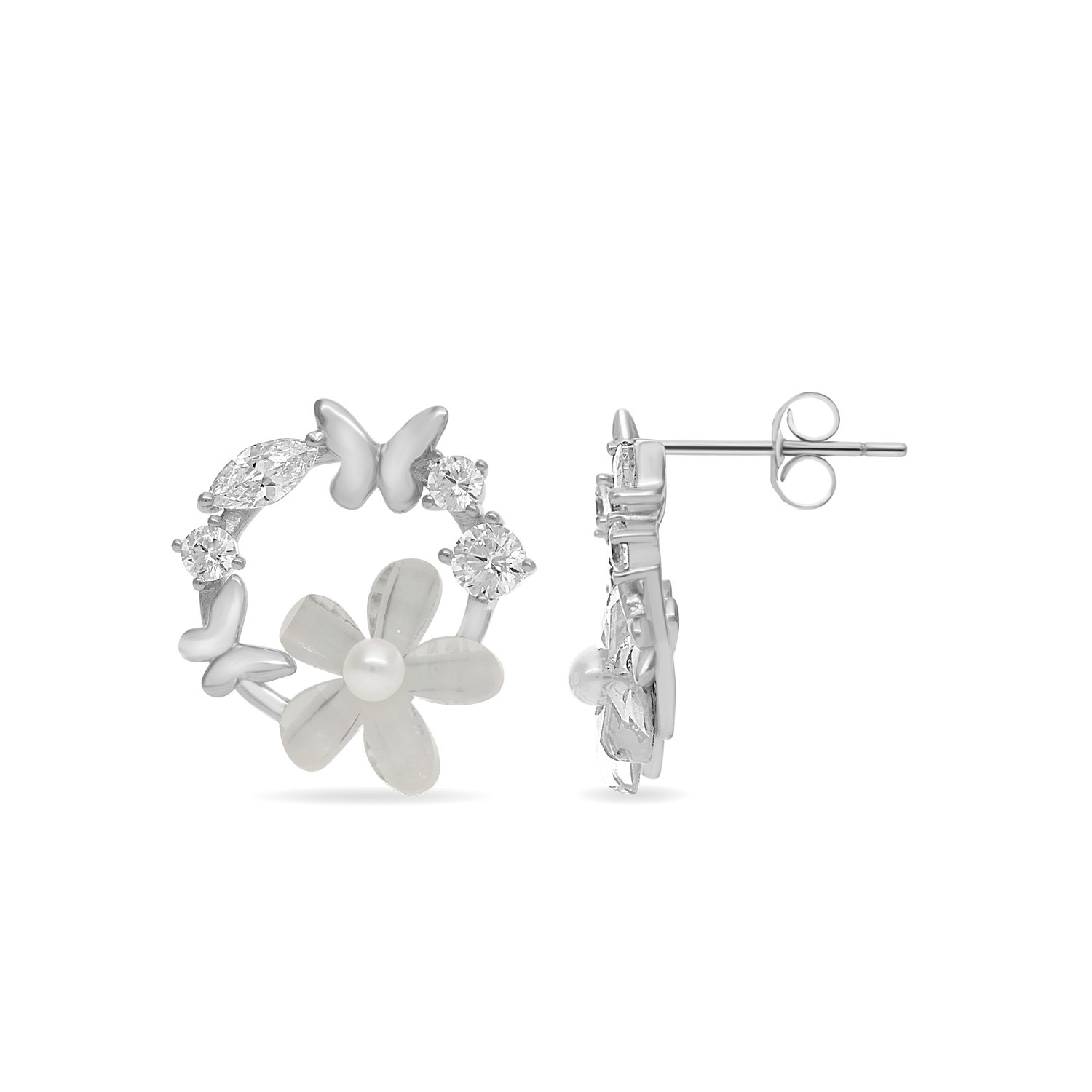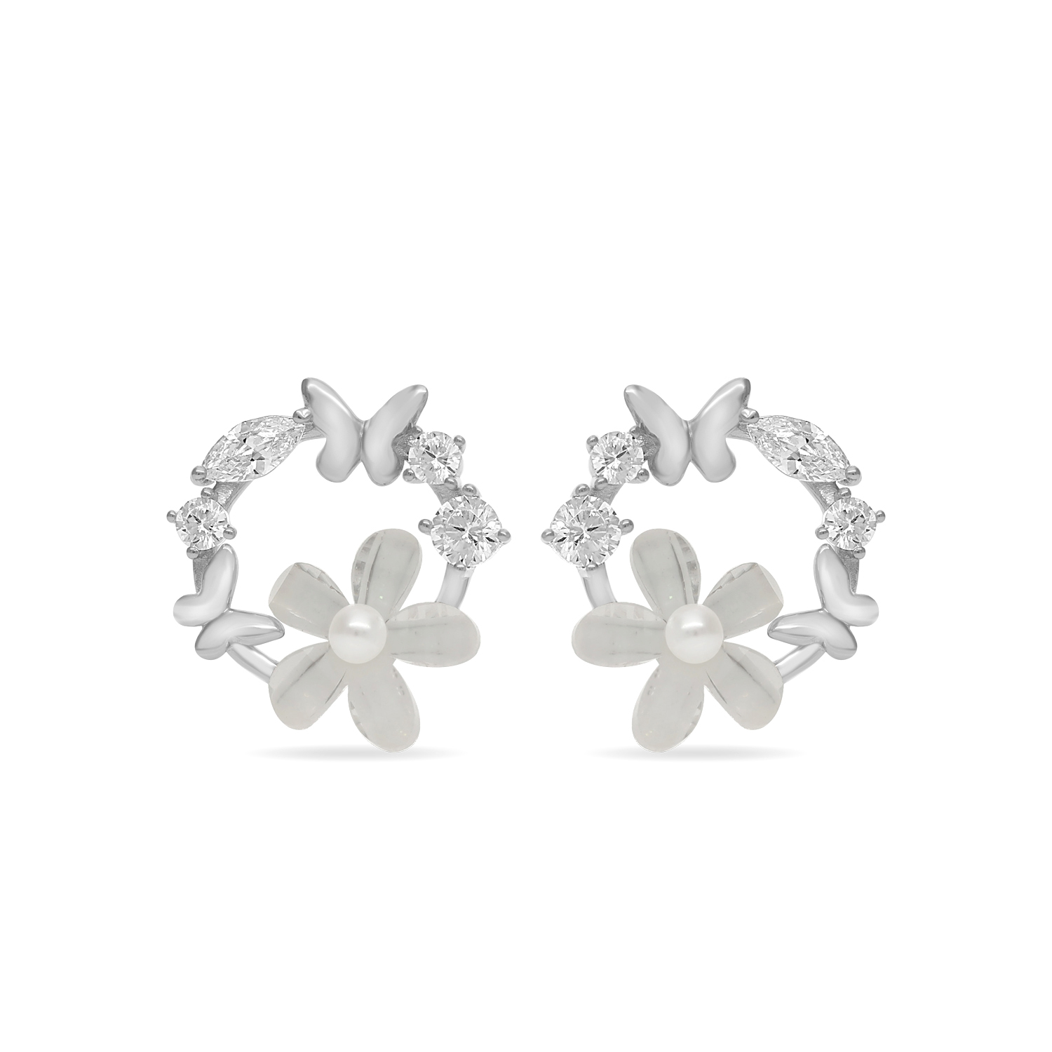 The Faylune Butterfly Flower Earring is an enchanting dangle design that combines delicate floral and insect motifs. It features a charming flower stud from which a beautifully crafted butterfly gracefully suspends, creating elegant movement. This piece captures a whimsical, garden-inspired aesthetic, making it a perfect accessory for nature lovers.