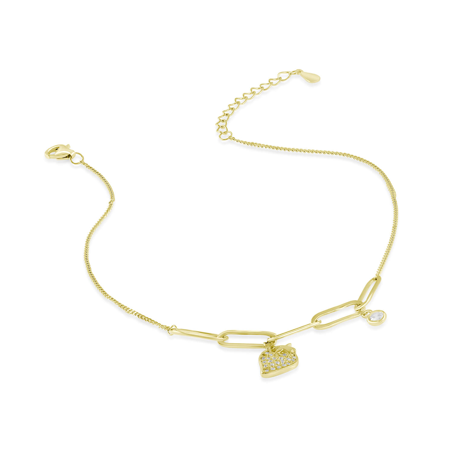 Designed in premium 92.5 sterling silver, this bracelet is all about understated luxury. The golden finish, linked chain pattern, and embellished strawberry pendant with crystals add a touch of sparkle, making it ideal for both daily styling and special occasions.