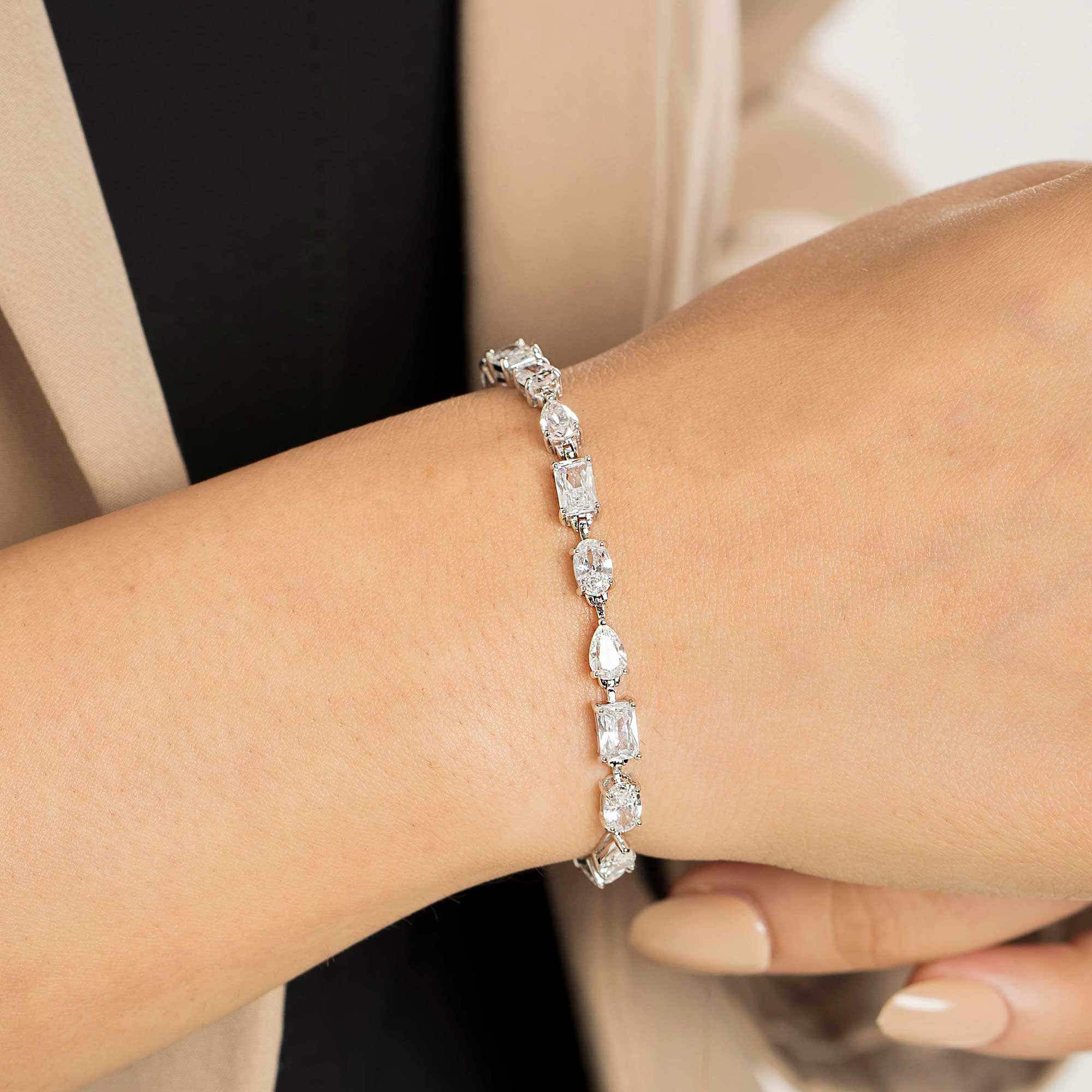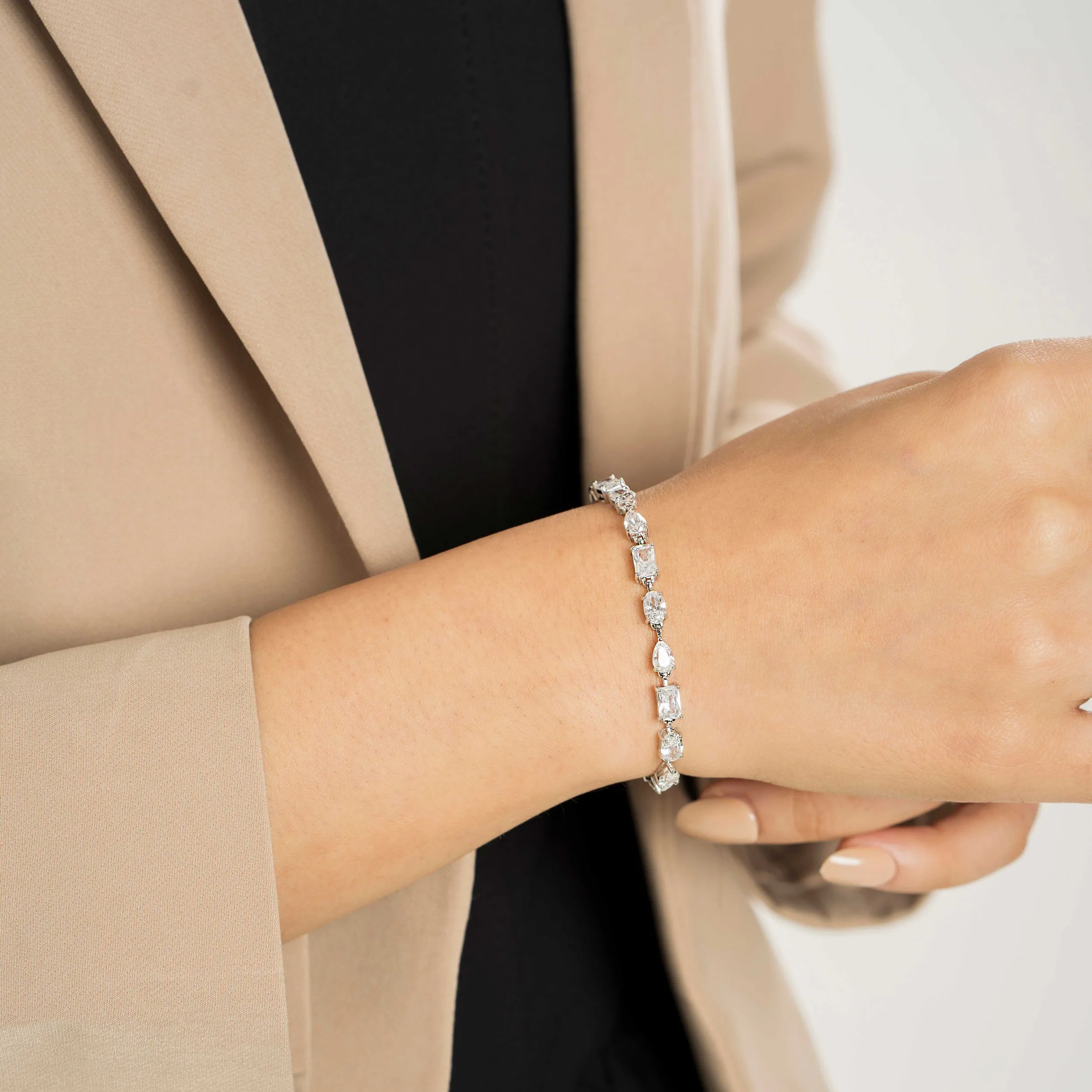 Made from genuine 92.5 silver, this bracelet sparkles with a combination of high-quality white stones in various cuts. From princess to marquise, each stone is set with precision to catch the light from every angle. A secure clasp ensures both beauty and durability.