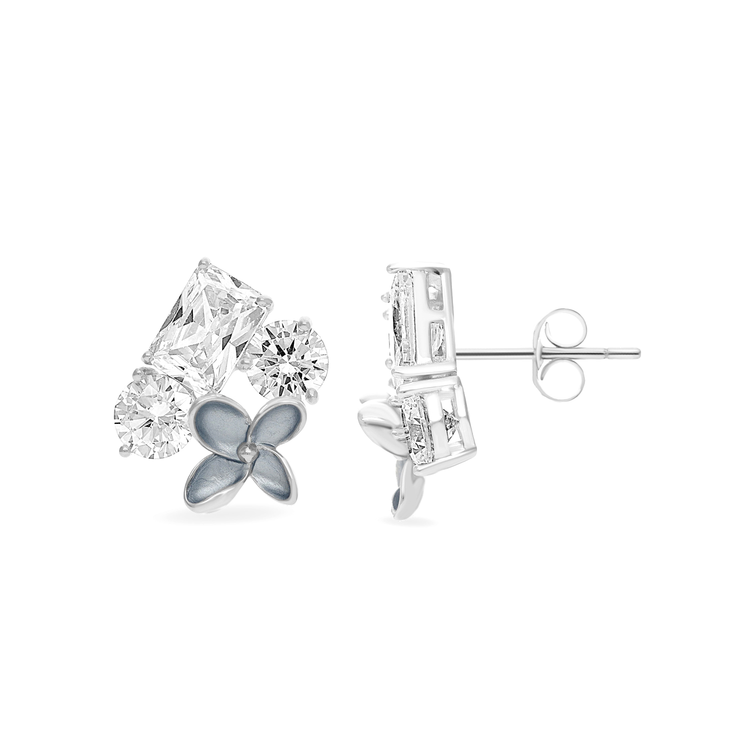 Grevine blooms in quiet elegance. Crafted in pure 925 silver, this grey floral earring is sculpted like a midnight blossom, refined yet powerful. Three solitaire diamonds rest at its heart, catching light like soft constellations—subtle, radiant, eternal. A piece that balances modern grace with poetic mystery, Grevine is made for those who wear their strength gently and their beauty effortlessly.