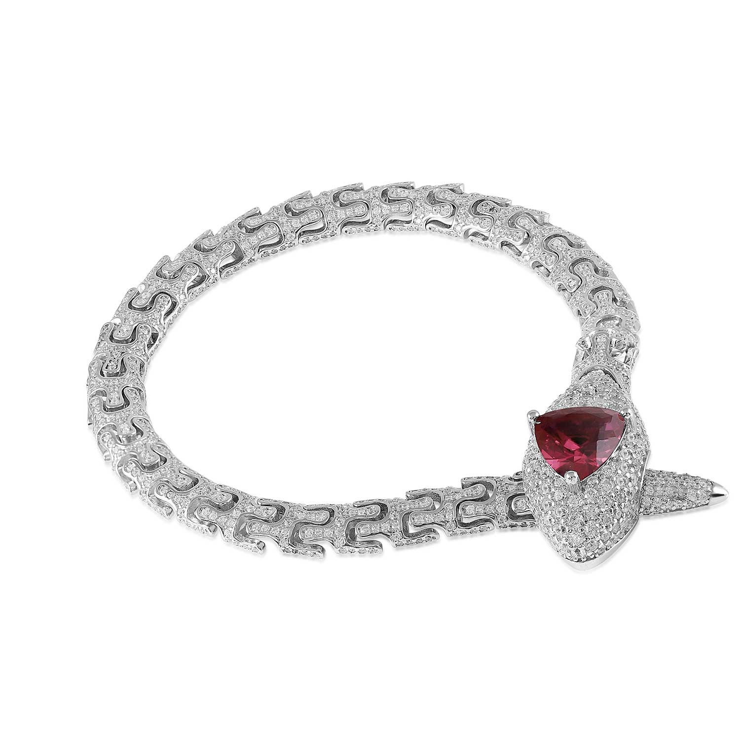 Crafted with meticulous attention to detail, Ophida combines sleek silver links, crystal pavé work, and a bold red centerpiece. This bracelet is perfect for those who love their jewellery fierce yet refined.