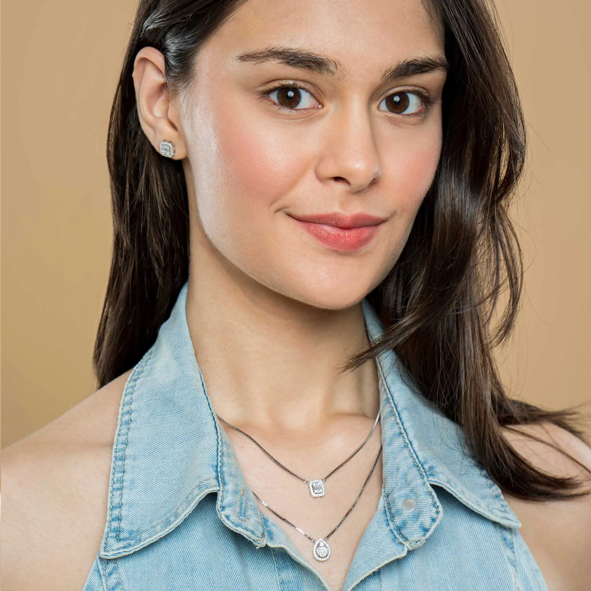 The Rectivyn Droplet Earring is a sophisticated dangle design crafted from radiant 925 sterling silver. It features an elegant stud base showcasing a rectangle-cut solitaire crystal for focused brilliance. Suspended below is a significant, shimmering big droplet crystal, creating graceful movement and maximizing light reflection for a truly glamorous statement.