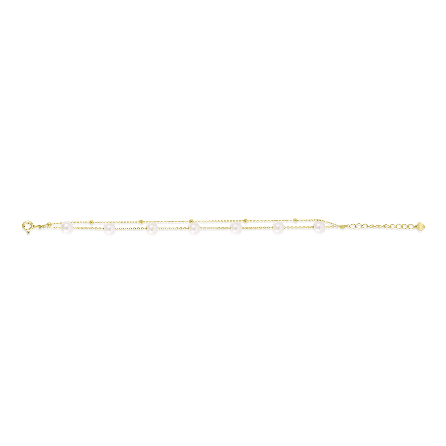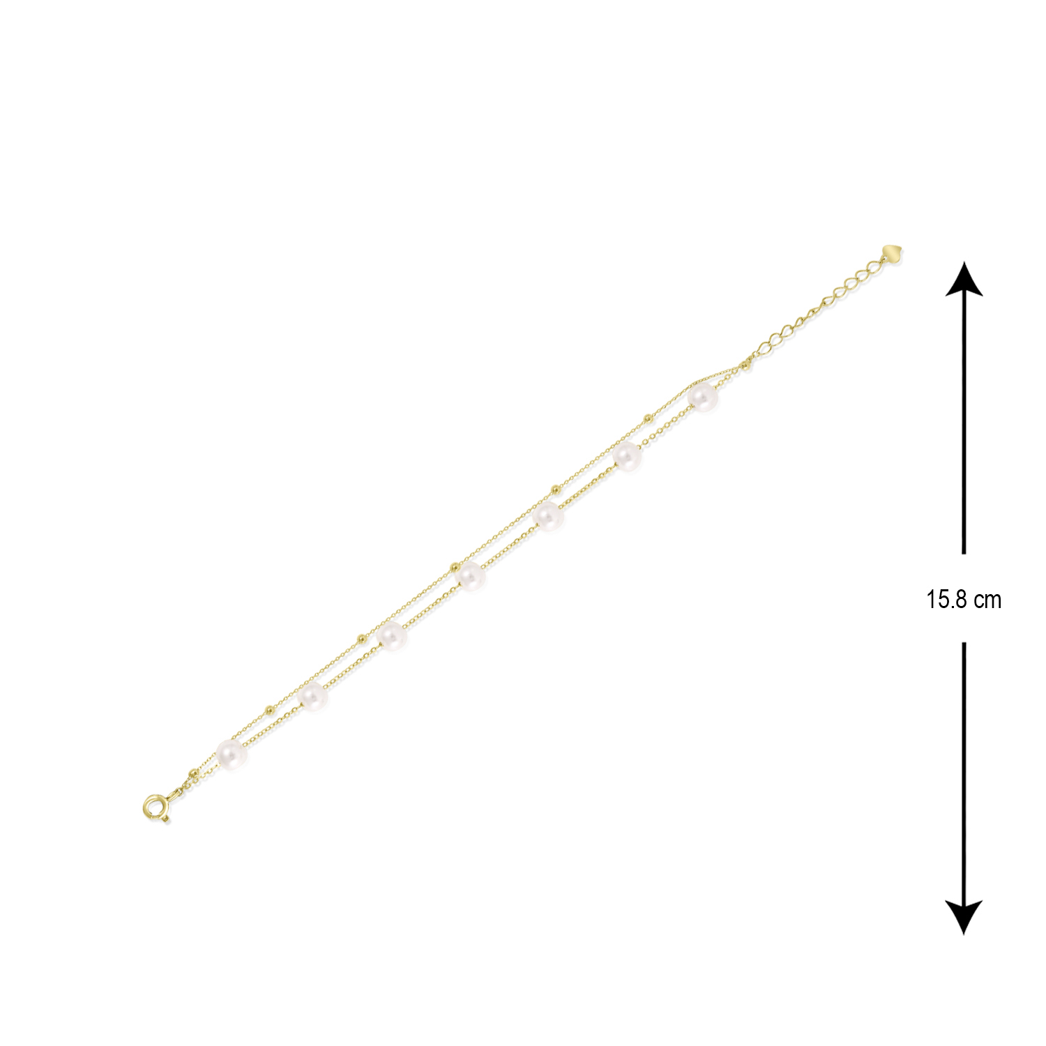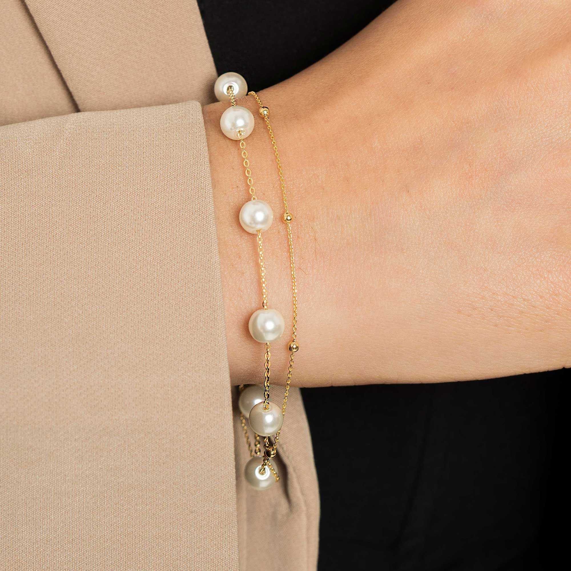 Refined and radiant – this two-line bracelet is a celebration of timeless beauty. Crafted from 92.5 sterling silver and finished in gold, it features two delicate chains beautifully adorned with luminous pearls, offering the perfect balance of grace and style.