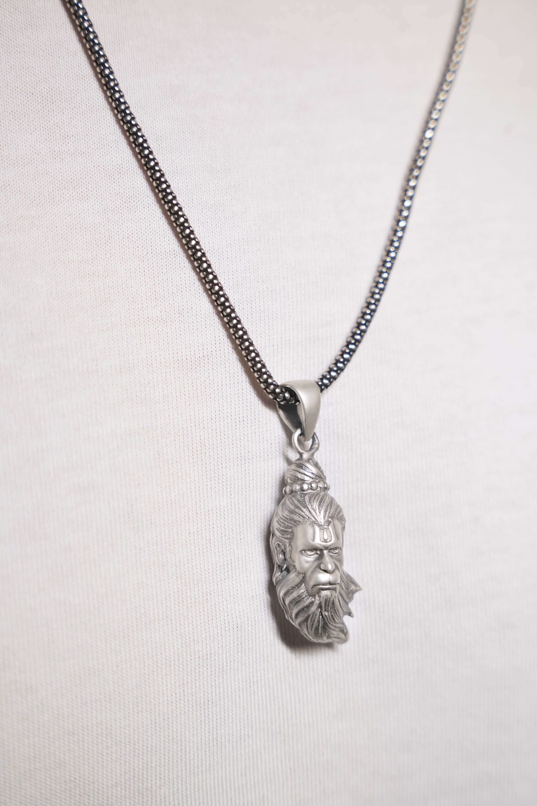The VAYUVEGA Pendant embodies the fierce protector and devoted servant of Lord Rama. Its detailed design in sterling silver pays homage to Hanuman’s strength and wisdom, creating a pendant that inspires courage and keeps divine energy close to the heart.
